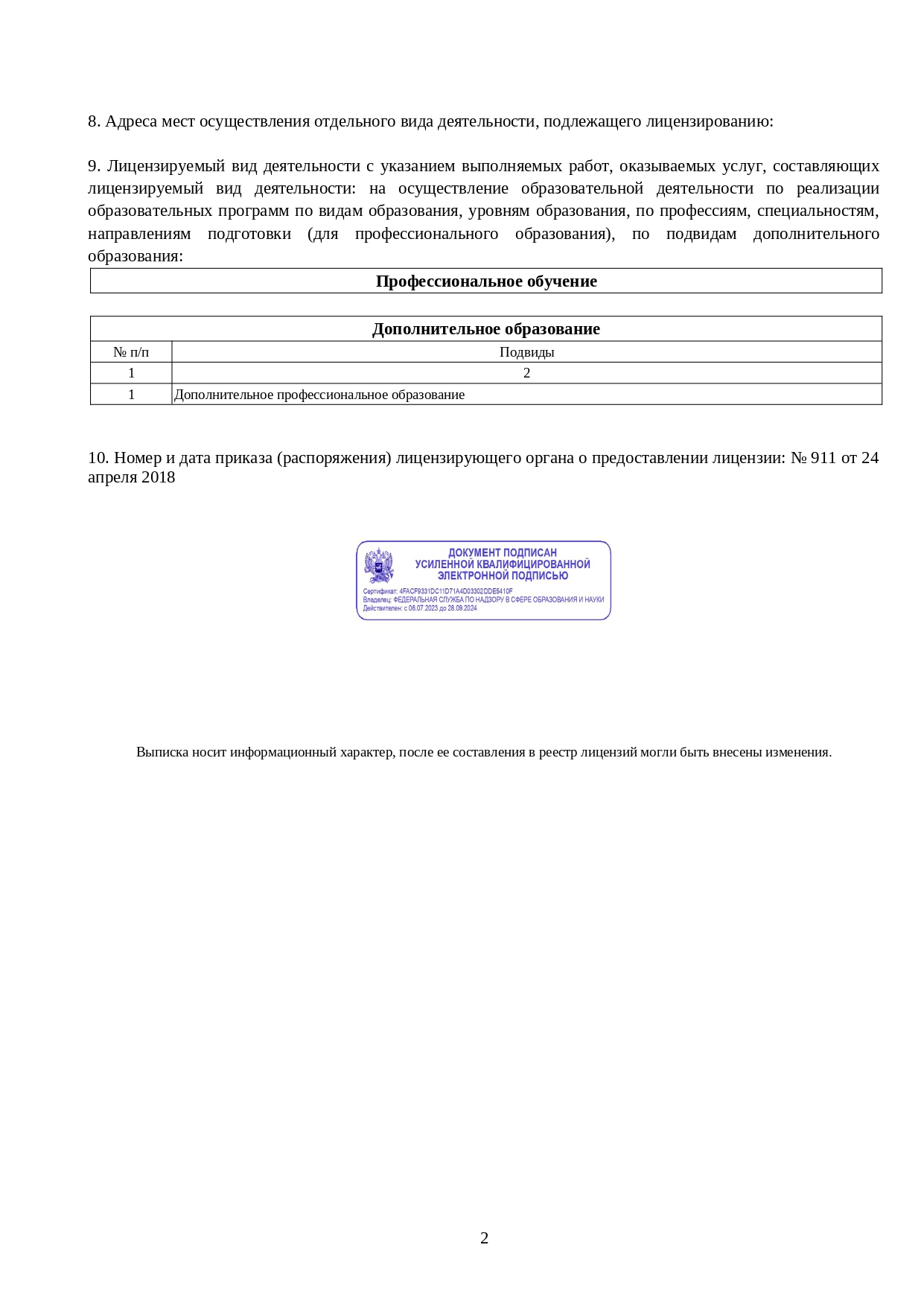 Лицензия на образовательную деятельность № Л035-01279-64/00197436 от 24.04.2018.